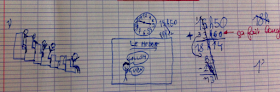 Mais Guillaume, c'est encore autre chose. Guillaume, il a bien compris l'aspect jeu de rôle, conquête, monstre et bagarre que je veux donner à tout cela. Alors il illustre son cahier d'exercices, avec des créatures qui correspondent à son propre ressenti de la tâche effectuée.
